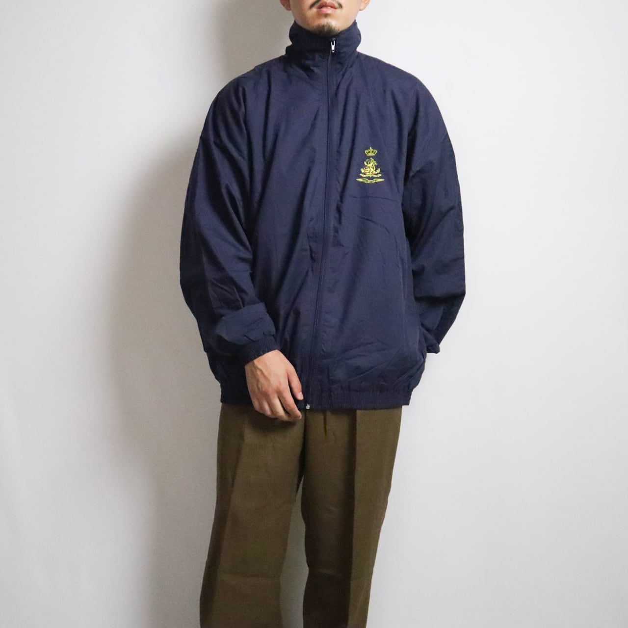 オランダ空軍にて90年代から使用されたトレーニングジャケット。軍のトレーニングジャケットというとリフレクターや配色のあるスポーティーなイメージのアイテムですが、こちらはネイビー単色で胸元にエンブレム刺繍が付くユーロらしい落ち着いたデザインになります。