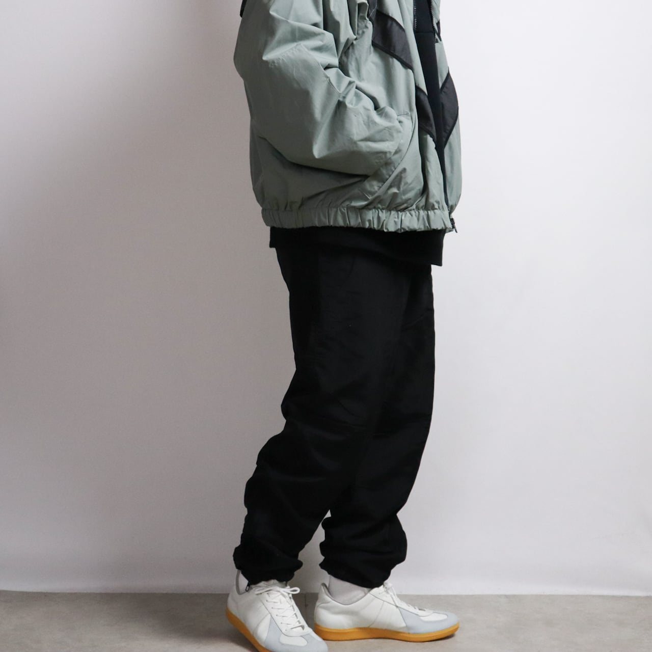 ウエストはゴムとドローコードで調整可能で、裾はゴムとジップ、左右にサイドポケット付き。