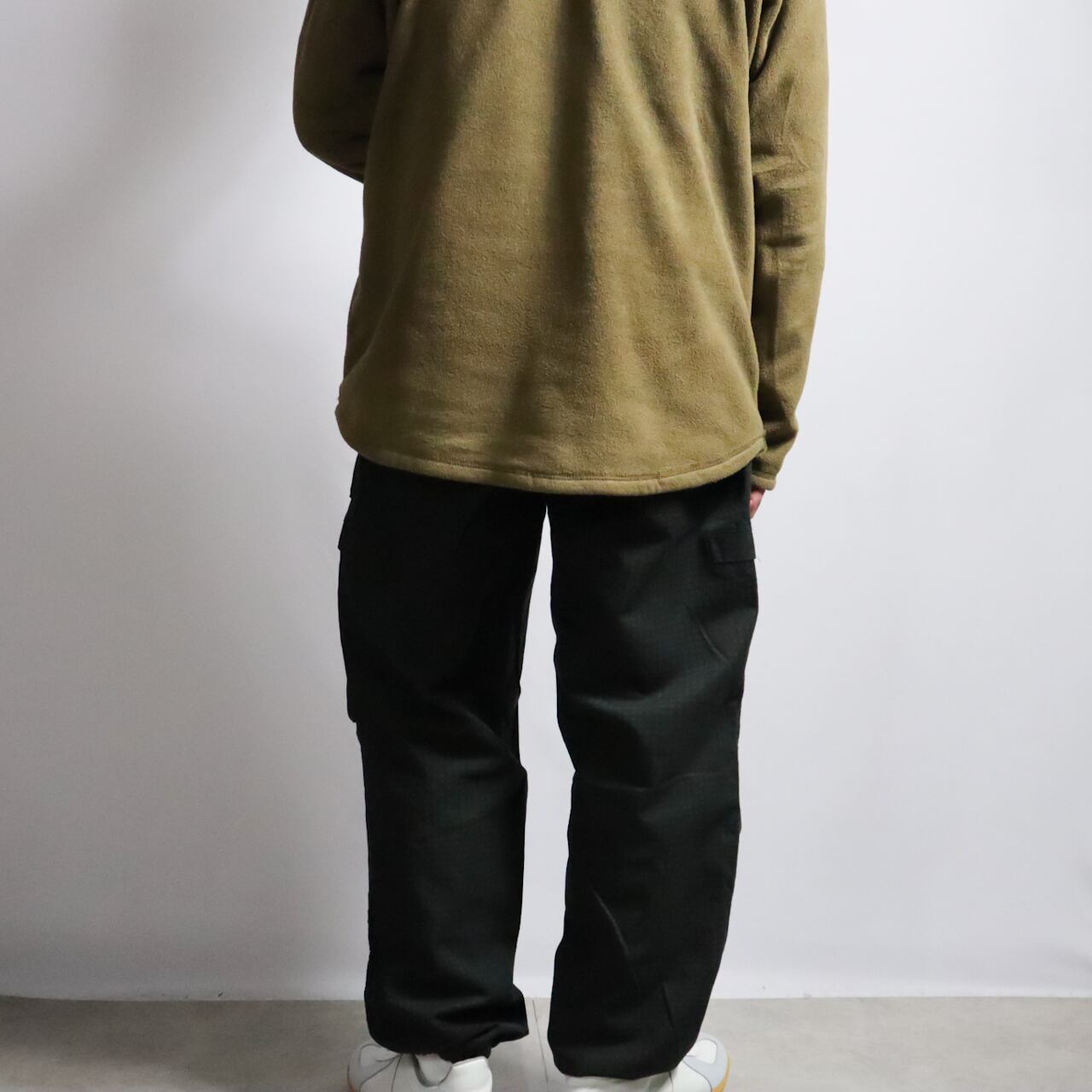 80年代〜90年代にかけて米軍で導入され、暗視装置から身を隠す為に開発されたナイトデザートカモフラージュが特徴のオーバーパンツ。格子柄とドットの組み合わせが独特な迷彩を今回は黒染めをしてご提案。