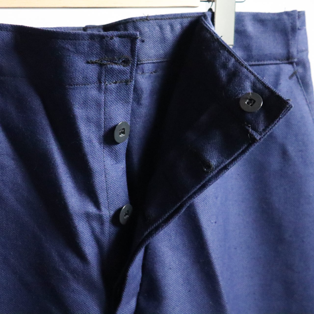 スウェーデン軍と言えば深いグリーンカラーのイメージが強いですが、こちらはスウェーデン軍としては珍しいネイビーカラー。深い股上とワイドシルエットが特徴の一本。