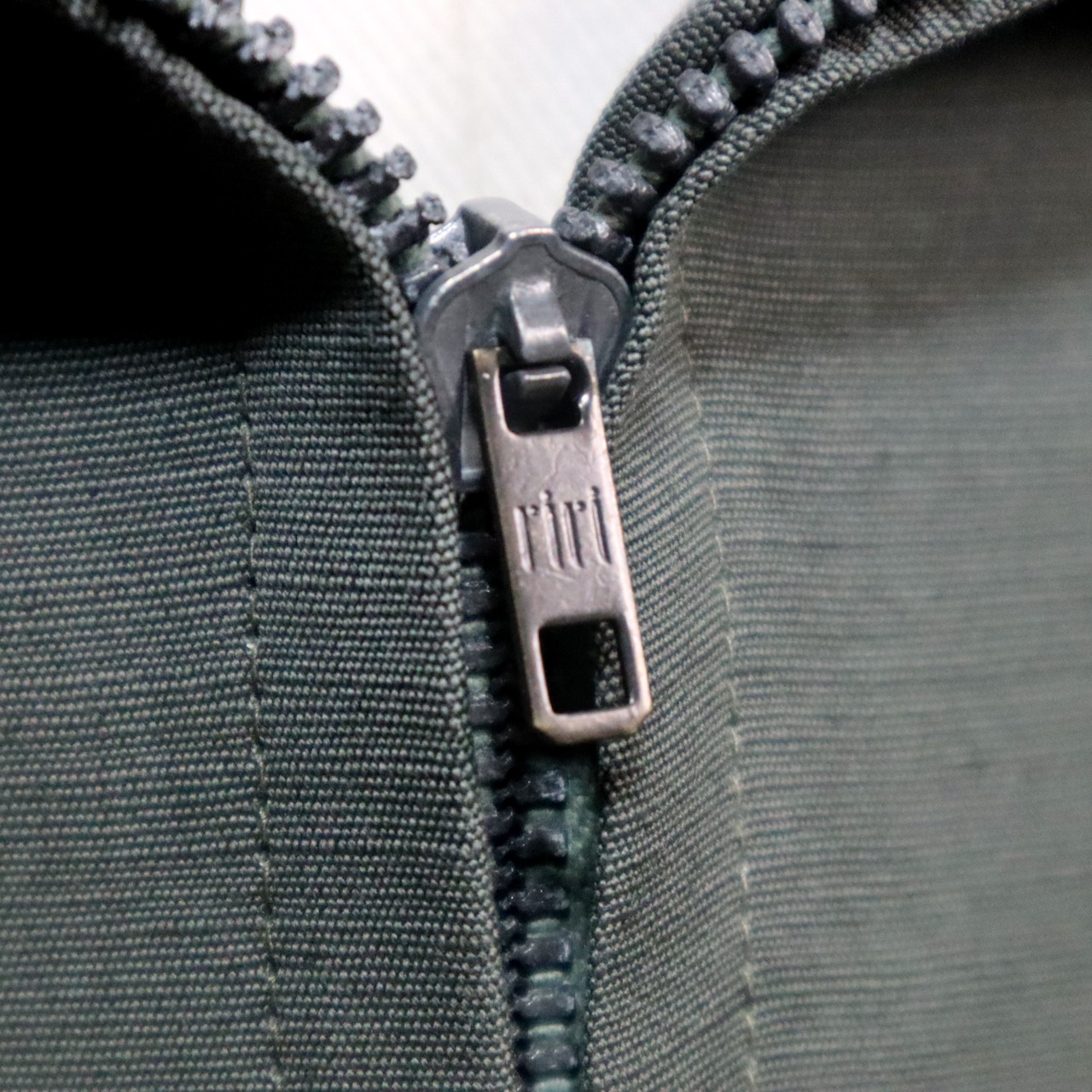 独特な凹凸とシャリ感のある平織り生地が特徴で、フロントはユーロらしいririの片爪ジップが付き、両胸に大きなフラップポケット、袖口にはペンで破けないようにホルダー付きのペンポケットが付きます。