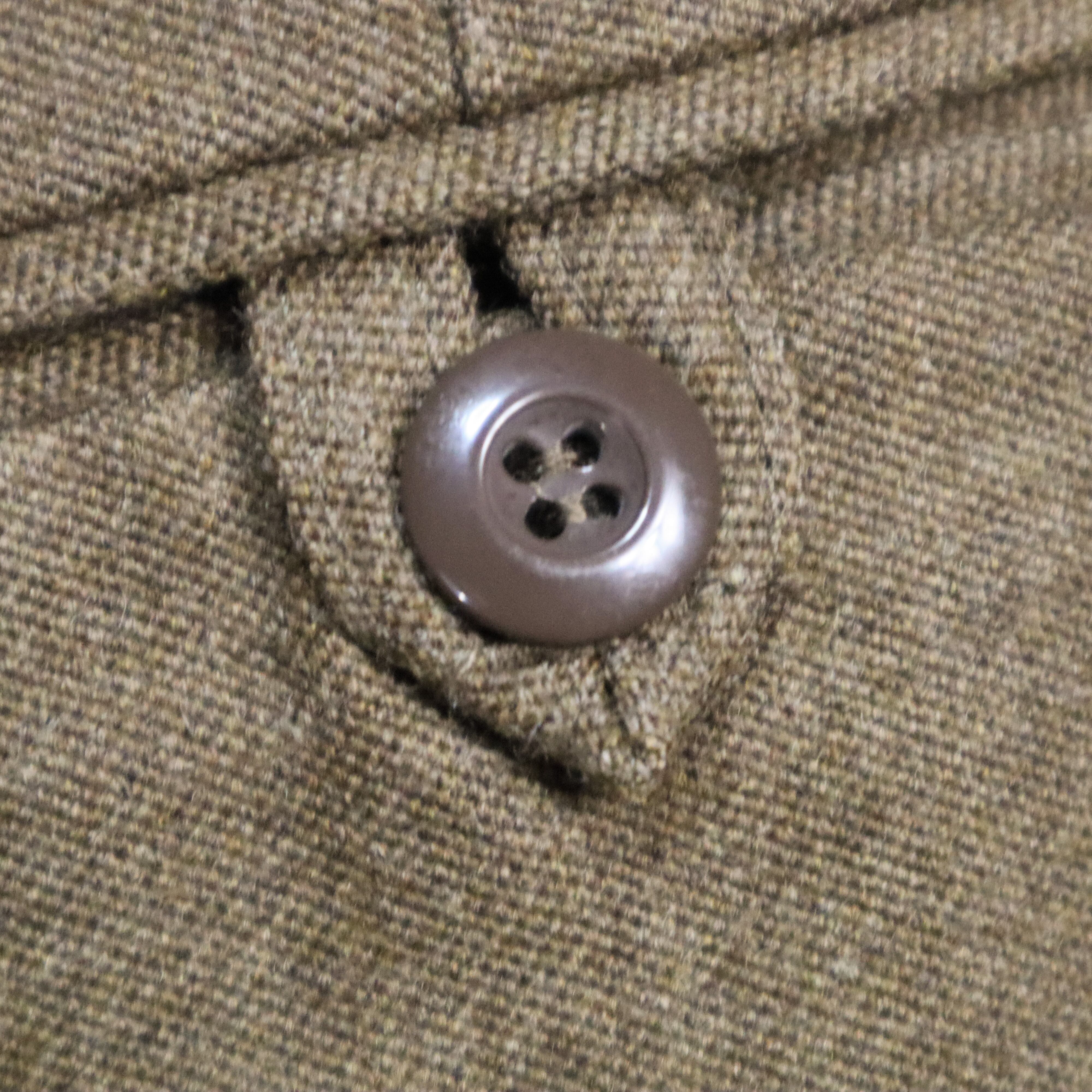 フロントはワンタック、センタープレスが入り、ポケットはサイドとバックに計4箇所、ウエストに長めの持ち出し。また、太く長いベルトループがイギリス軍らしさを感じさせる仕様。